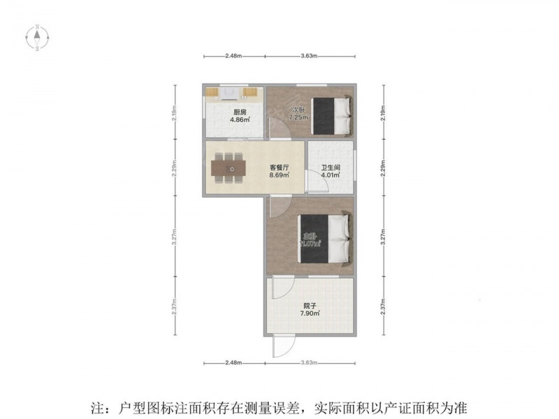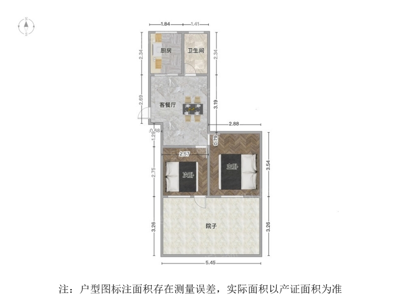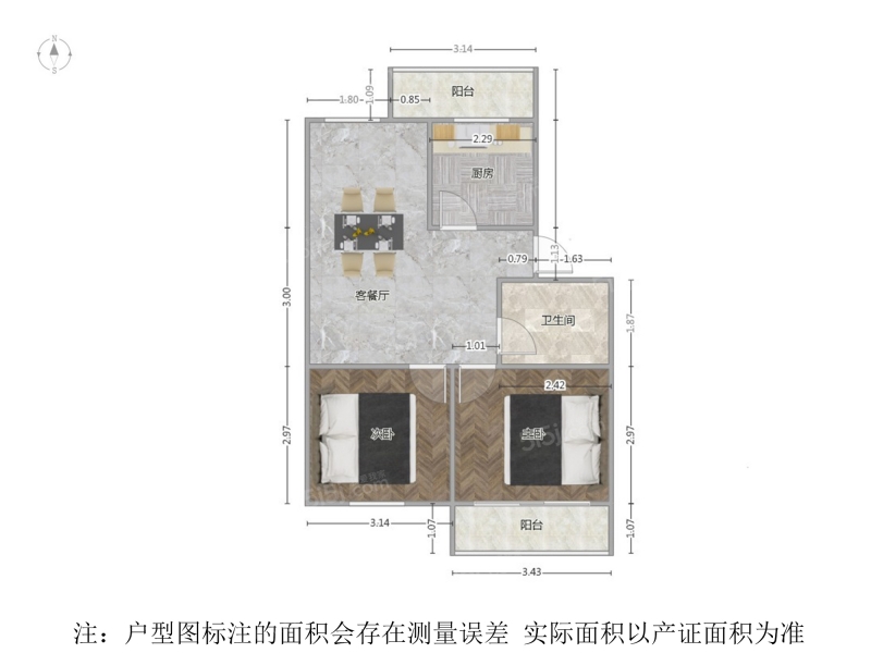 1室2厅2卫 49㎡